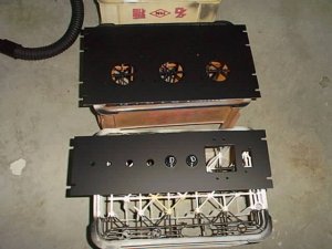 取り出し口を変更しました | 上部ににブラック塗装のパネル取り付け | 完成した3CX-3000A7X2Amp |