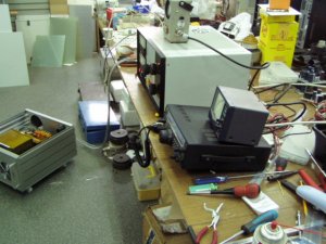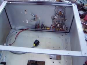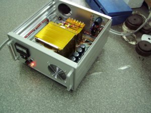 完成しましたが殆ど変化なし | 電源の製作です、コンパネを敷いています | 高圧トランスは3KV-1.2Aです |
