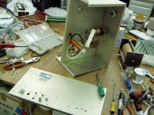パネルとの連絡コネクタ取付 | 密閉の裏蓋製作しました | 天板はオリジナルを加工しました |