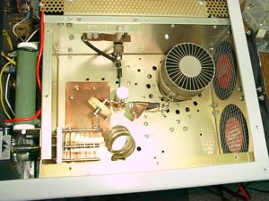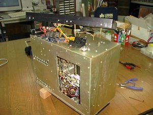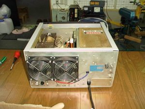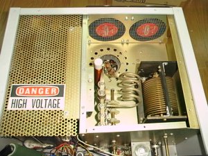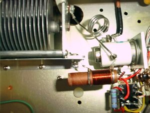 LoadVCスパークの跡あり右に交換 | PlateVc推定10PF5KV前にバーニア取り付け | 殆ど完成したRF部、銅板Gnd |