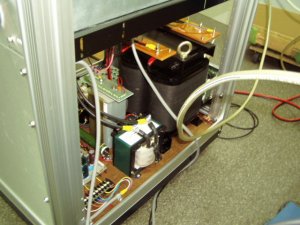 電源の部品を並べました | マグネットRL2個 | 高圧トランスは単相10KVA |