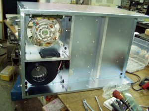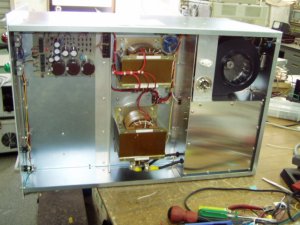 仕切り板と補強板を付けました | 真空管ソケットが少しいびつ | ソケットとファン取り付け |