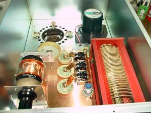 入力同調コイル、TL-922流用 | 裏の全体です | 抵抗10個はHV感知用合計10M |