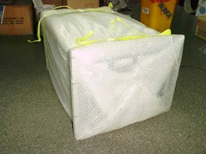 完成しました | プチプチで包み | 木箱に入れて発送 |