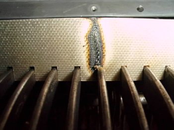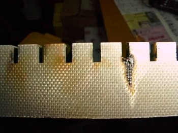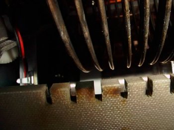 絶縁部分へ火が出て焼けたところ