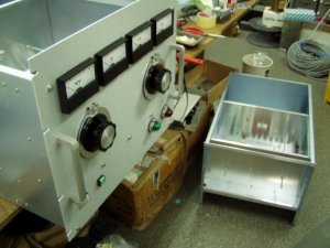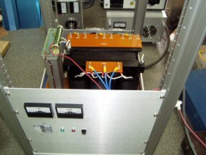 3相電源10KVAです | 完成して動作チェック | オイルコン上の抵抗は、高圧と直列で供給 |