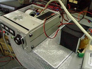出来上がった中身、スペース少しあり | 一寸インチキして、外部電源供給 | へへへ、1KWクリアーだぜ |