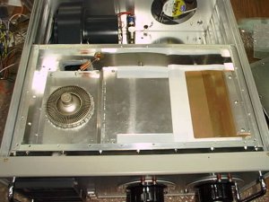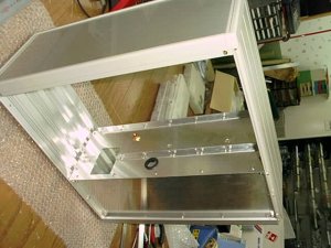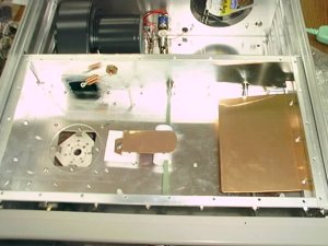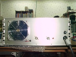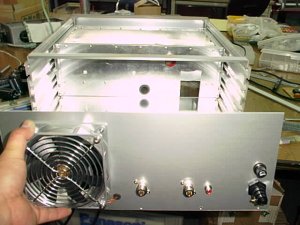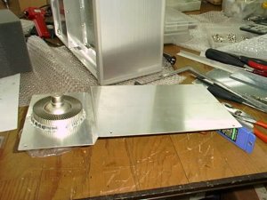 背面ファンは、トランス冷却用 | シャーシ加工の途中 | 共振板、合わなくて後で両サイド切りました |
