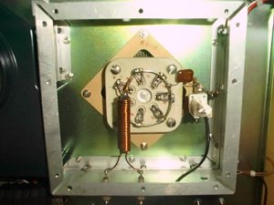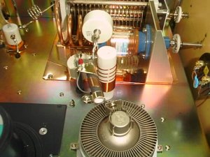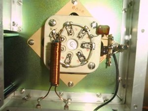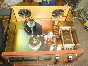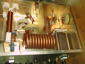 最終的には入力同調は固定Cです | スペースに余裕のあるRF部 | 左側πLコイルとバキュームRL |