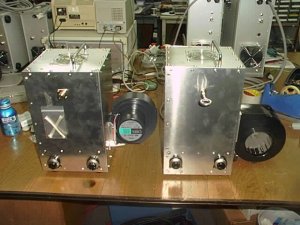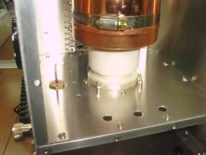 真空管に煙突が誇らしげに立っています | 入力同調用のストリップライン | ほぼ完成しました |