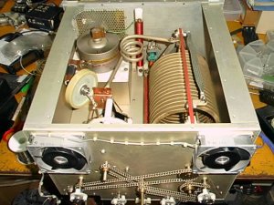 PlateコンデンサーGndから切替に変更 | Plateコンデンサーの位置を大幅変更 | ほぼ完成したRF上部 |