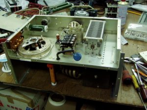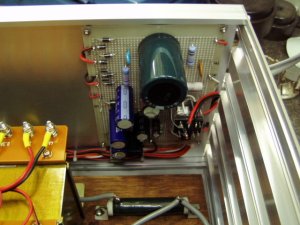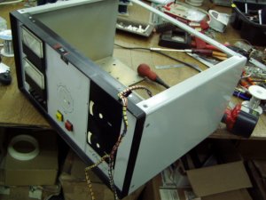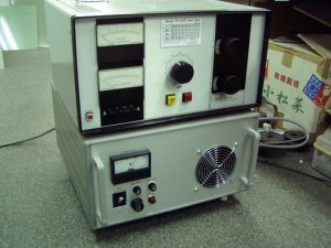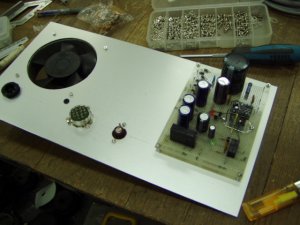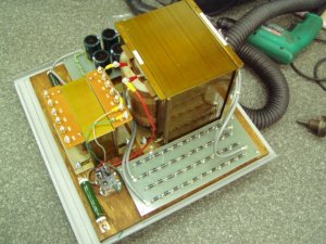 完成しましたが殆ど変化なし | 電源の製作です、コンパネを敷いています | 高圧トランスは3KV-1.2Aです |