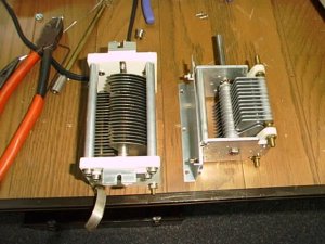 LoadVCスパークの跡あり右に交換 | PlateVc推定10PF5KV前にバーニア取り付け | 殆ど完成したRF部、銅板Gnd |