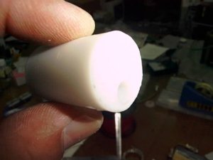 初めは三味線糸使用していました | なんと焼き切れました、怖い | テフロン棒でカムを作りました |