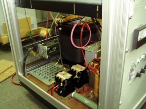 電源の部品を並べました | マグネットRL2個 | 高圧トランスは単相10KVA |