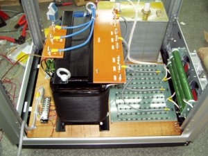 整流基板と高圧ブリーダー100KX3 | ラックの天板にはファンが2個 | 背面です |