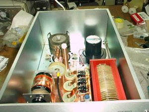 入力同調コイル、TL-922流用 | 裏の全体です | 抵抗10個はHV感知用合計10M |