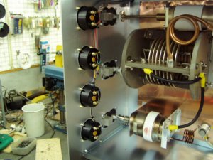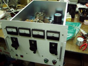 RFデッキ完成です | Plate.vc100PF、バリL6μ、Load1000PF | メーターも裏です |