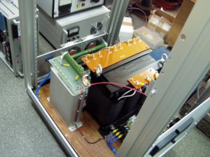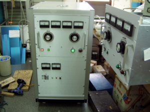 3相電源10KVAです | 完成して動作チェック | オイルコン上の抵抗は、高圧と直列で供給 |