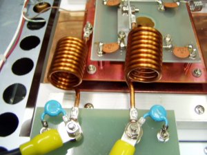 ヒーター、SG.CG.28Vトランス | これがW6POタイプのタンク回路 | 両端のテフロンカムでC調整 |