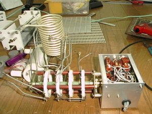 コイルとSW、HiBandのラインが細く長くNGですよ | タンク回路全て外しました | 構成上最良とは行かないが、完成したRF |