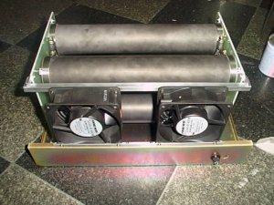 | 主要部分の完成です 3oのガラエポ使用 | 背面のFan 12p角 Ac100v 15w | 前面のFan 12p角 Ac100v 15w |