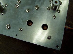 シールドケースを被せて完成 | コネクターは拘りのテフロン製 | トリマは基板の裏、ヌル調整用穴 |
