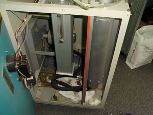 早速バラしてみました | 右側の筒がダミー本体、下にオイルポンプが見える | 右の大きなラジエターが冷却 |