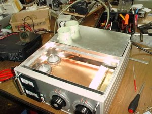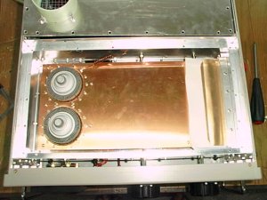 上蓋を開けたところ | 銅板の共振板、効果はないが余っている | 蓋にはガラエポのチムニー |