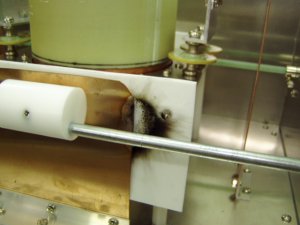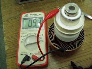多目に実験しましたが、Plateとフラッパのクリアランスが狭く1KW程度でスパークを始めテフロンシートが真っ黒になりました、